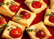 - aperitiefhapje met bladerdeeg, geitenkaas en kerstomaatje.