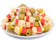 - aperitiefhapje met surimi, gouda kaas, groene olijven en schijfjes citroen.