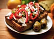 - waldkorn broodjes, gewokte ajuin en paprika, groene olijven, kruidige olijfolie,...