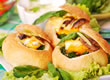 - pistolets, spinazie uit de diepvries, kruidenroomkaas, champignons, gepocheerde eieren.