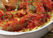 - opgerolde lasagnevelletjes gevuld met gehakt en overgoten met tomatensaus op smaak gebracht met kruidenroomkaas.