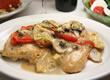 - kip, champignons, rode paprika, artisjokharten uit bokaal, room, peper,...