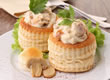 - 1 soepkip, 250 gr gehakt, 250 gr champignons, peper en zout, 1 takje tijm, 50 gr bloem, 3 el vloeibare boter, 1 flesje room (20 cl), 2 eierdooiers, 8 pasteitjes.
