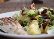 - ingrediënten : gemarineerde kipfilet met een maaltijdsalade van aardappelen, gemengde salade, maïs, appel, rode bonen.