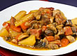 kalfsniertjes, preiwit, wortelen, ajuin, champignons, bruin abdijbier, mosterd, tijm, laurierblad,...