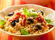 - couscous, gebakken ui en paprika, rozijnen, zwarte olijven, witte bonen, olijfolie, citroensap, groentebouillonblokje,...