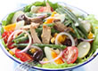 - maaltijdsalade van aardappelen, fijne prinsessenbonen, tomaten, zwarte olijven, kropsla, hardgekookte eieren, tonijn, ansjovisfilets in olie, kappertjes,...