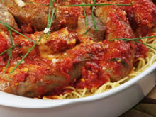 Verrijkt de tomatenroomsaus met het braadvocht van de braadworstjes.