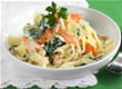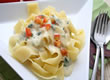 - pasta, geraspte parmezaan, room, ajuin, erwtjes, olijfolie,...