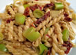 - penne, olijfolie, ajuin, rode paprika's, erwtjes,tomatenpuree, room, peper, knoflook,1/2 kl dille, tabasco, geraspte parmezaan (40gr),...