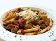 pasta met braadworst, tomatenroomsaus en parmezaan