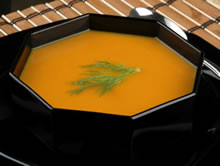 Laat de wortelsoep wat afkoelen en giet er net voor het opdienen het versgeperste sinaasappelsap bij.
