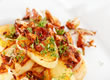 - Eenvoudig hartig recept met aardappelschijfjes, spekblokjes, room, melk, peper, nootmuskaat,...