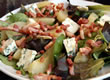 - gemengde salade, peren op lichte siroop, blokjes Roquefort, gebakken spekblokjes.