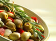 - olijven met zachtgekookte rode paprika, zilveruitjes en kappertjes.