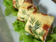 Serveer de gevulde pannenkoeken met zalm en ricotta op een bedje van sla en werk af met een takje verse dille.